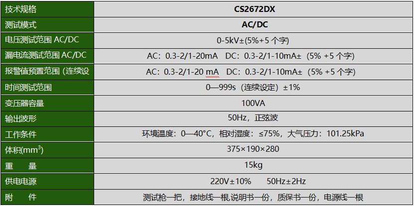 CS2672DX交直流耐压测试仪, 电压:AC/DC 0-5KV, 电流:AC 0-20mA, DC 0-10mA