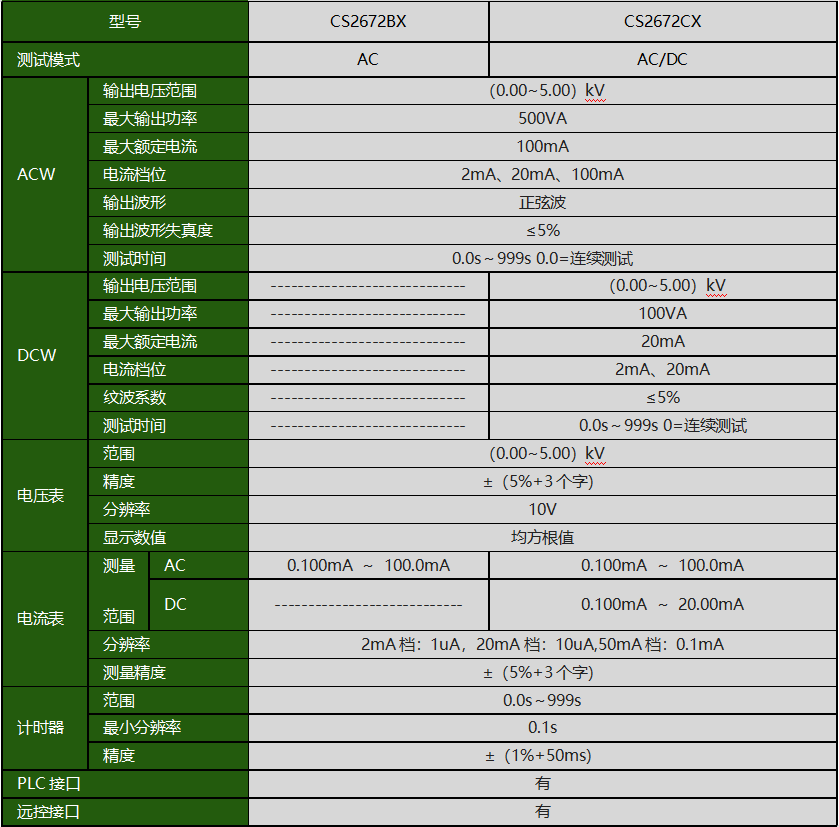 CS2672CX耐压测试仪产品参数