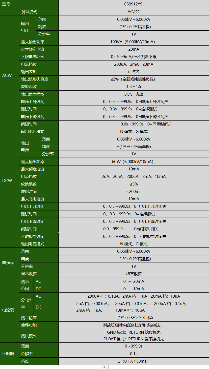 CS9912YSI程控医用耐压测试仪(AC/DC)产品参数